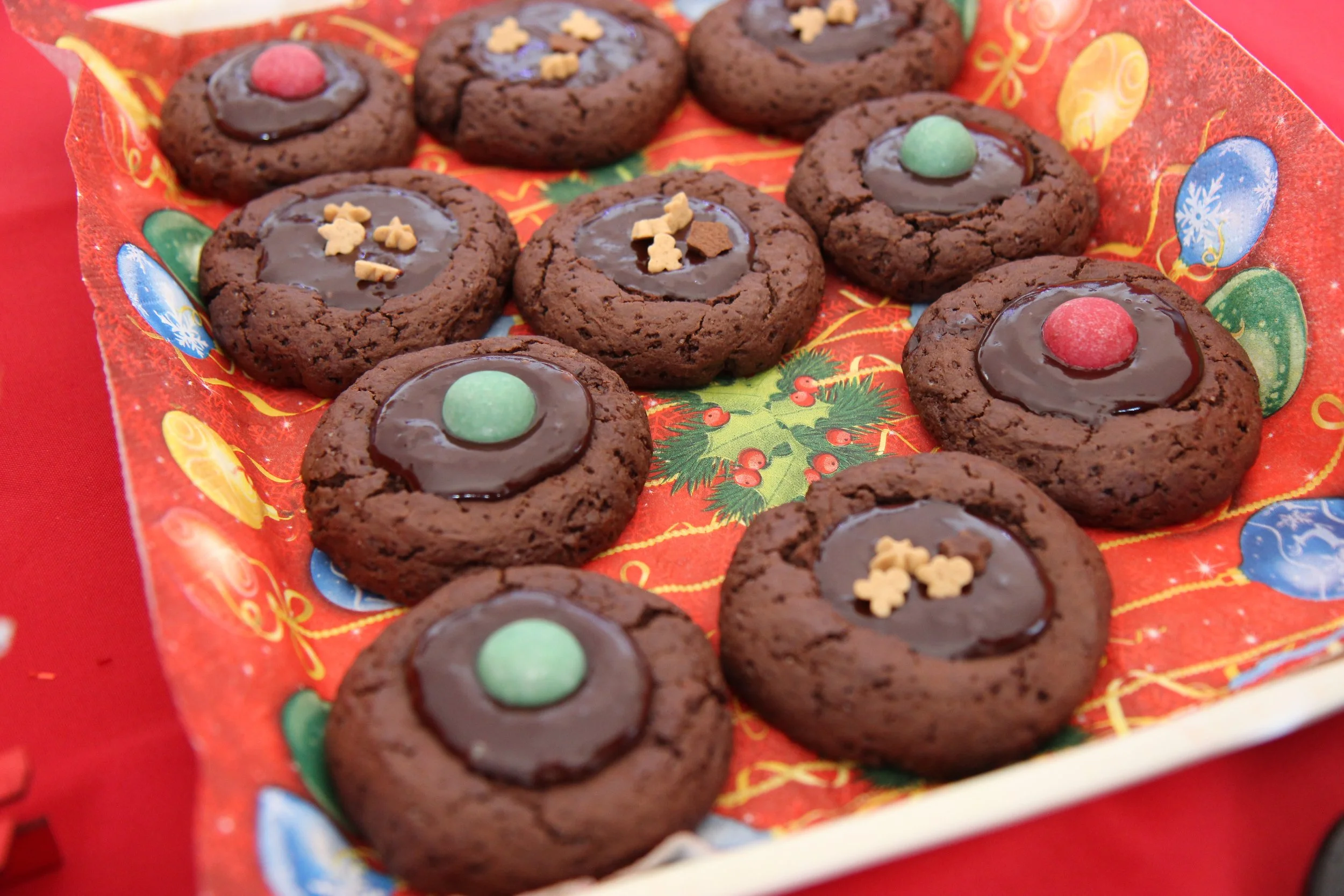 Lavorate l’impasto con una frusta elettrica e in seguito con e mani. Se necessario, aggiungete poca farina o dell’altro liquido. L’impasto dovrà essere malleabile, ma non troppo appiccicoso. Dividete l’impasto in palline (con le mani umide vi sarà più facile), adagiatele su una teglia rivestita da carta forno e successivamente schiacciate ogni pallina leggermente con il palmo della mano. Con un cucchiaino schiacciate leggermente il centro di ogni biscotto. Lasciate riposare i biscotti in frigo per circa 30 minuti.