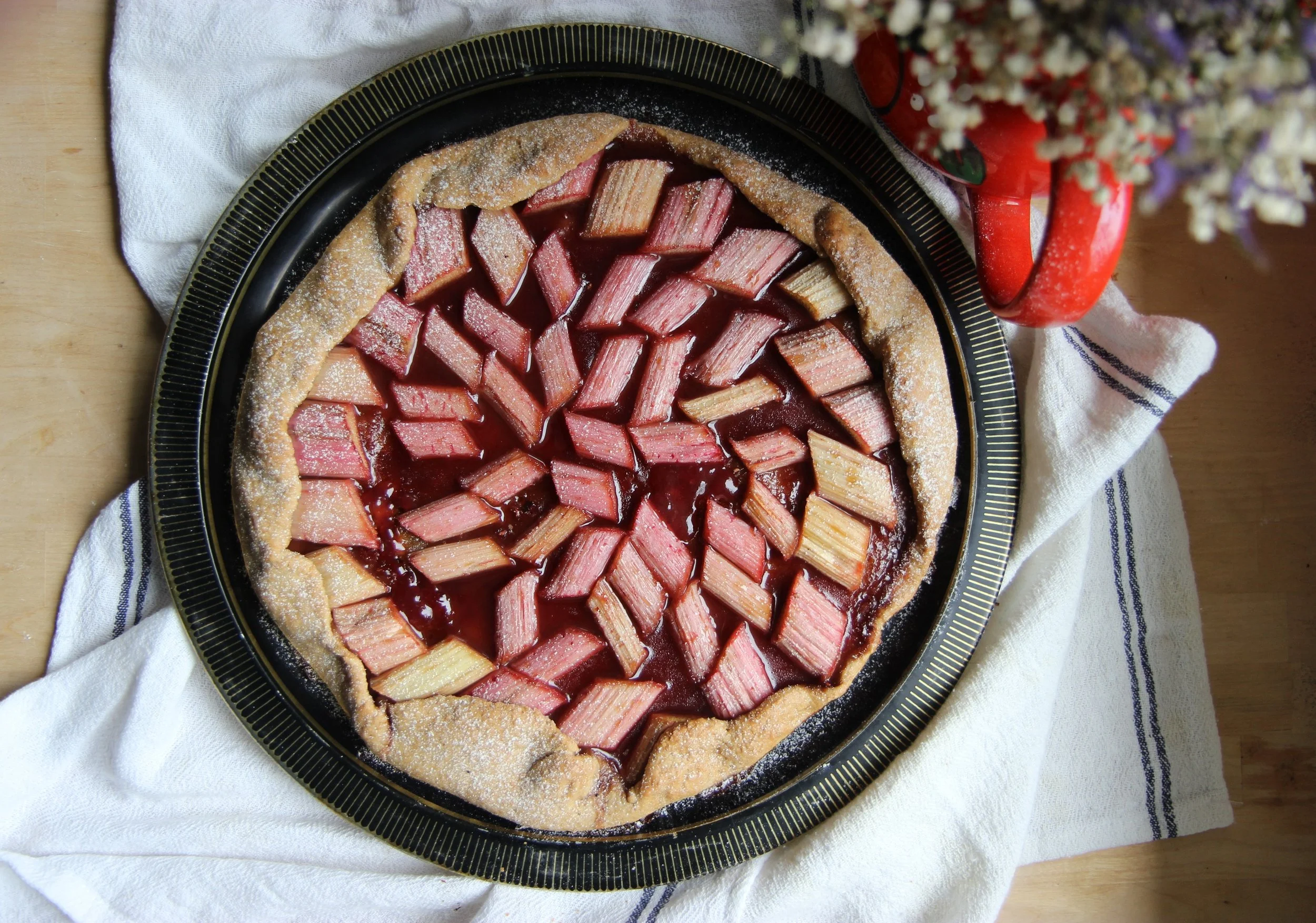 Prendete la base della galette e stendetela su un foglio di carta forno fino ad ottenere uno spessore di circa 5 mm e bucherellatela con una forchetta. Cospargete sulla superfice uno strato sottile di marmellata, poi adagiate i pezzi di rabarbaro, richiudete i bordi verso l’interno e aggiungete dei cucchiaini di marmellata ai frutti di bosco tra una un pezzo di rabarbaro e l’altro, infine spolverate con dello zucchero di canna. Spennellate la superficie con del latte vegetale e cuocete in forno statico preriscaldato a 180° per circa 30 minuti, Lasciatela intiepidire e la Galette al Rabarbaro è pronta per essere gustata!