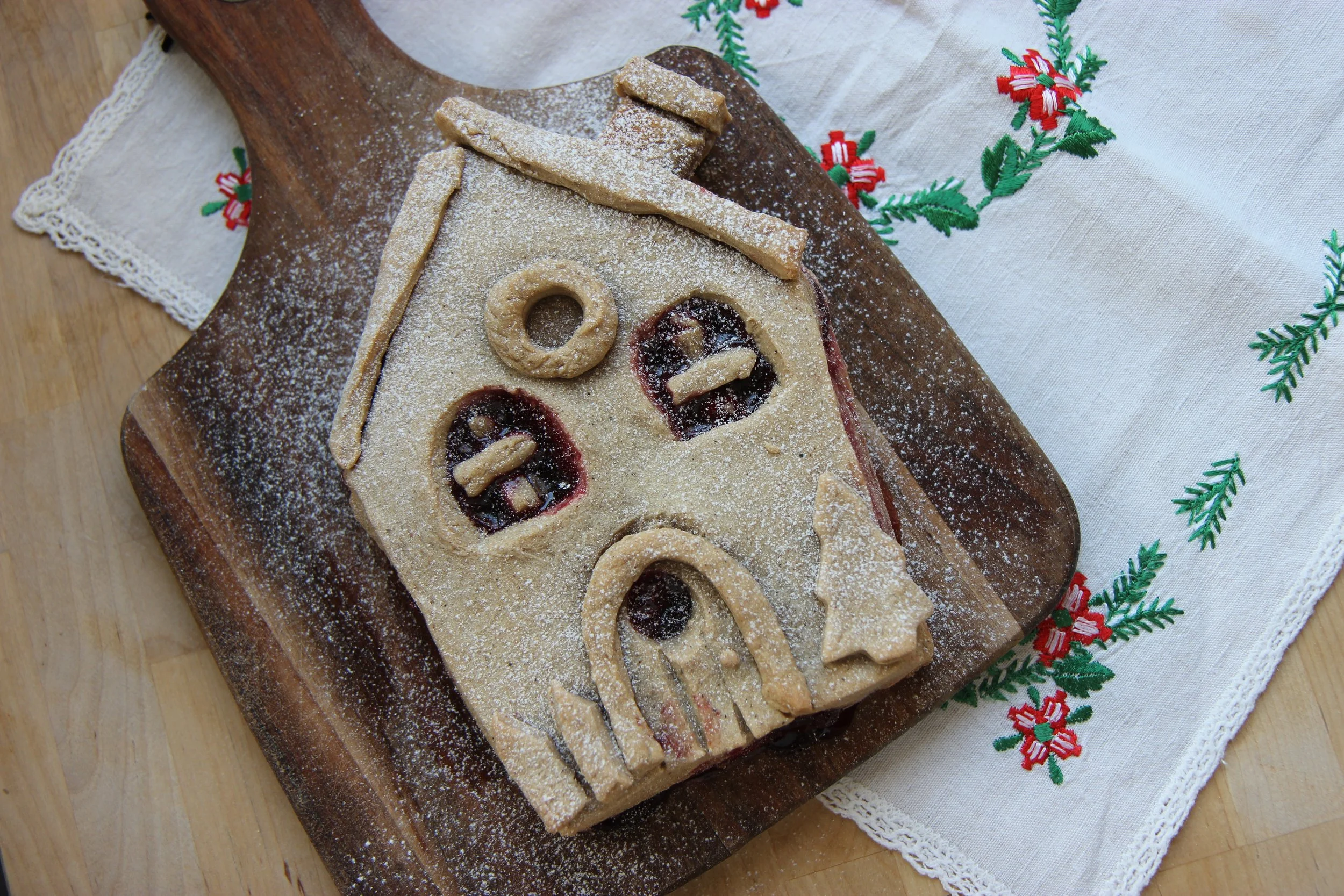Continuate ad impastare su di un piano fino ad ottenere una impasto omogeneo e non appiccicoso. Se è necessario aggiungete un goccio di latte vegetale o altra farina. Stendete l’impasto (meno di 1 cm di spessore), con le  apposite formine date forma ai biscotti.